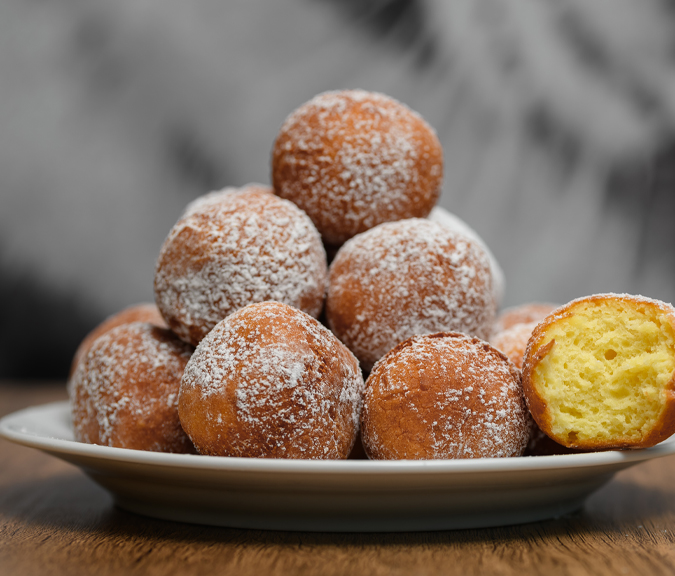 Łączymy ze sobą: mąkę, proszek do pieczenia, cukier puder, cukier waniliowy, jaja oraz jogurt i dokładnie mieszamy. Odmierzamy porcje za pomocą łyżki lub łyżki do lodów i smażymy je na rumiano. Odsączamy na papierowym ręczniku i posypujemy cukrem pudrem.