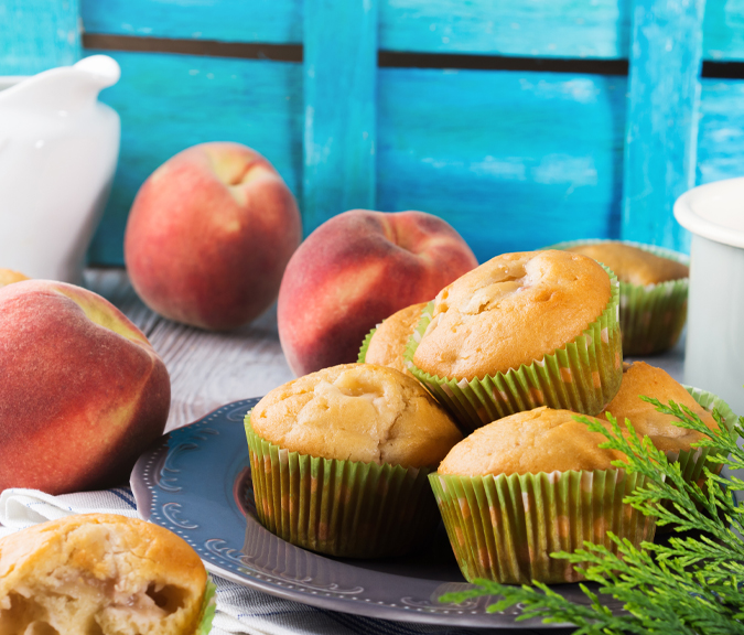 Wszystkie składniki dokładnie miksujemy na jednolitą masę. Brzoskwinie sparzyć w gorącej wodzie, zdjąć skórkę, pokroić w kostkę. Foremki napełnić 2 łyżkami ciasta, na wierzchu nałożyć 4-5 kostek brzoskwiń. Piec w nagrzanym piekarniku w temp. 180 C przez ok. 25 -30 min. Gotowe babeczki posypać cukrem pudrem. Smacznego!